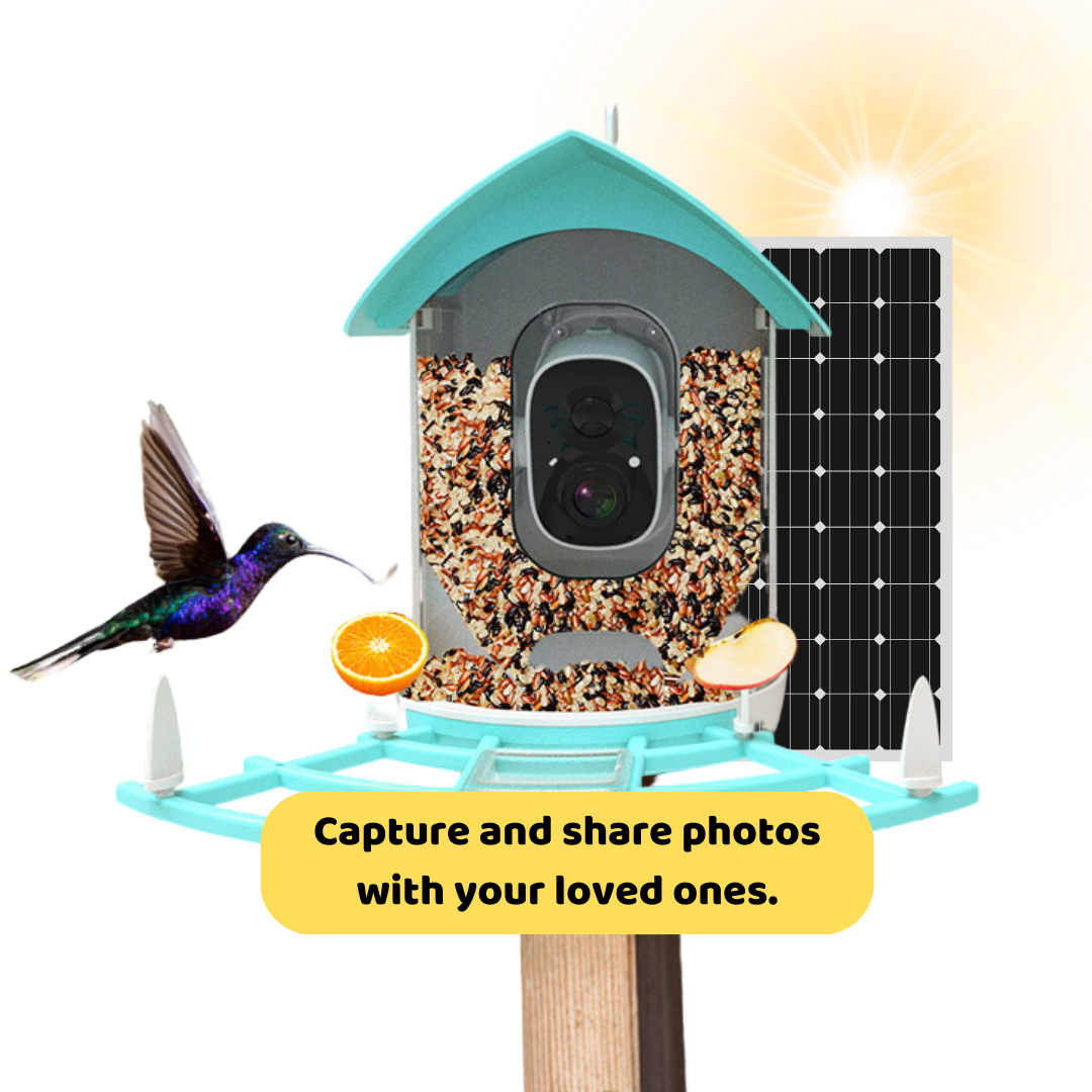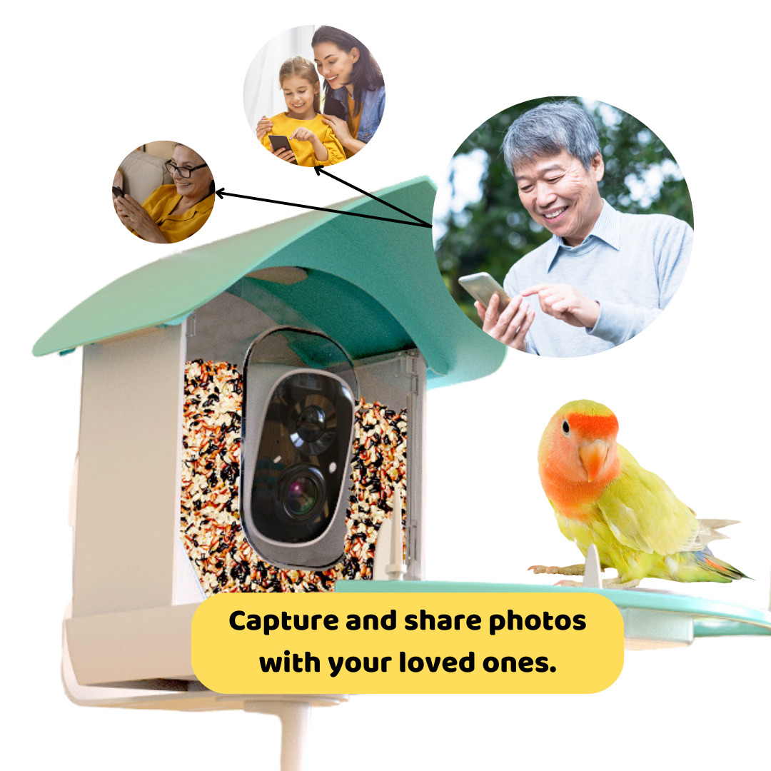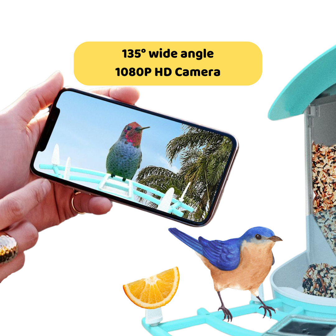 No worries about missing your bird buddies with our 1080p HD camera and 135-degree wider angle. Get instant alerts when birds show up, watch them live, or see the action later. Our smart tech even turns birds into your friendly pals with names and profiles.